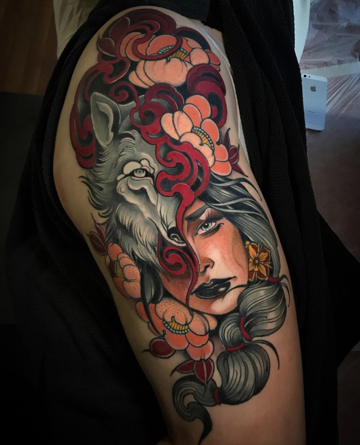 “I love Art Nouveau, it is an artistic movement to which I feel very attached and from which I draw great inspiration for the movement and delicacy of drawing. At the beginning I got great influence from the Japanese style but over the years – (Monique has been tattooing for 16 years) – I realized that my work was closer to the Neo-traditional.