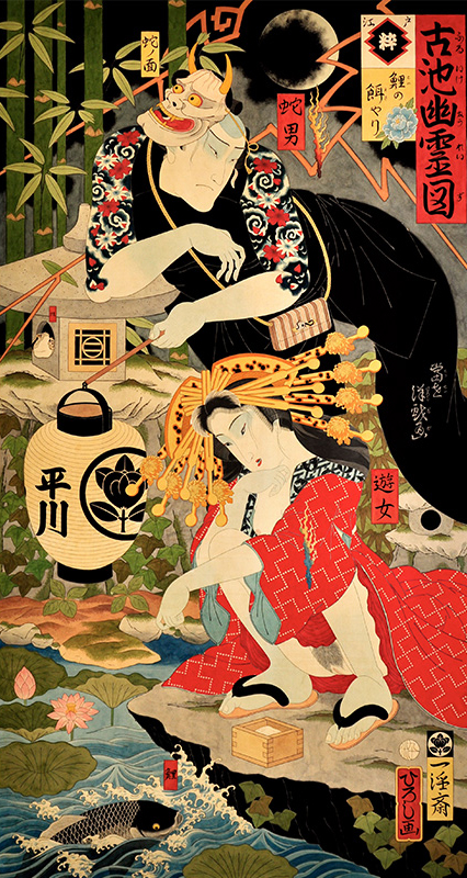 Two decades of work, with illustrations, paintings and tattoos where samurai, geishas, snakes, ghosts, skeletons, demons, fantastic beasts and elements of nature become reinterpretations and visual worlds with new and different details.
