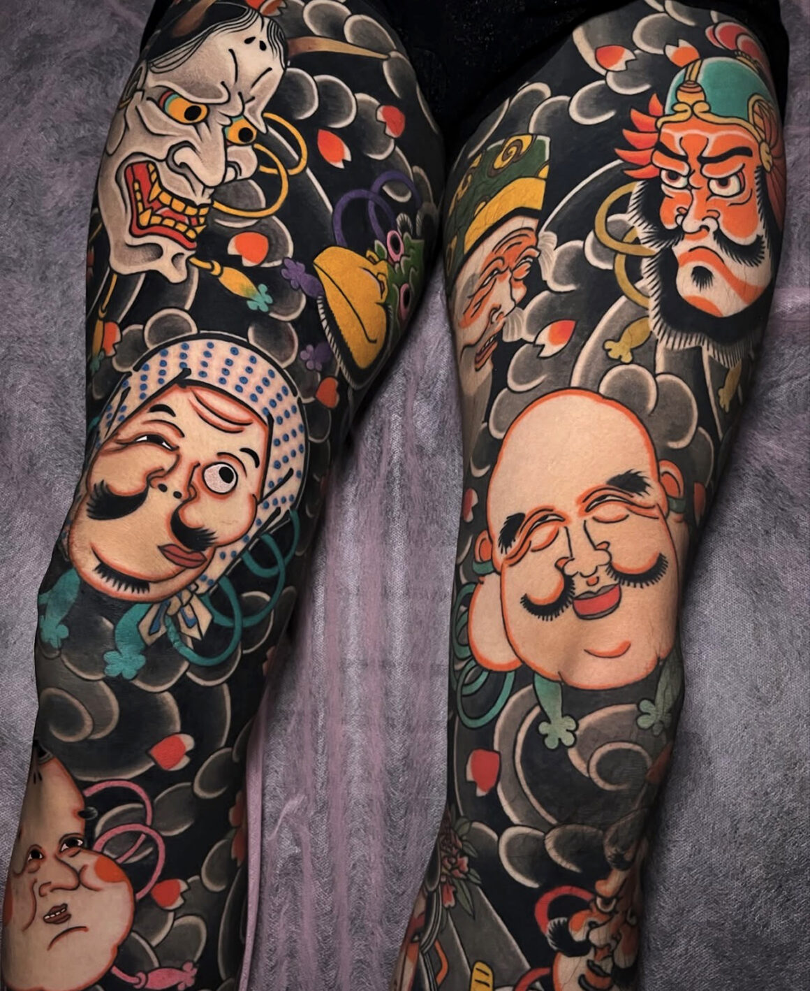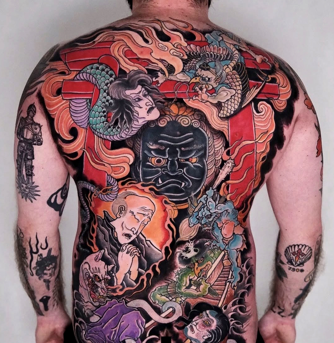 Classic motifs — dragons, koi, tigers, samurai, deities and masks — remain central to this visual language, yet they’re now being reinterpreted through new visual codes.