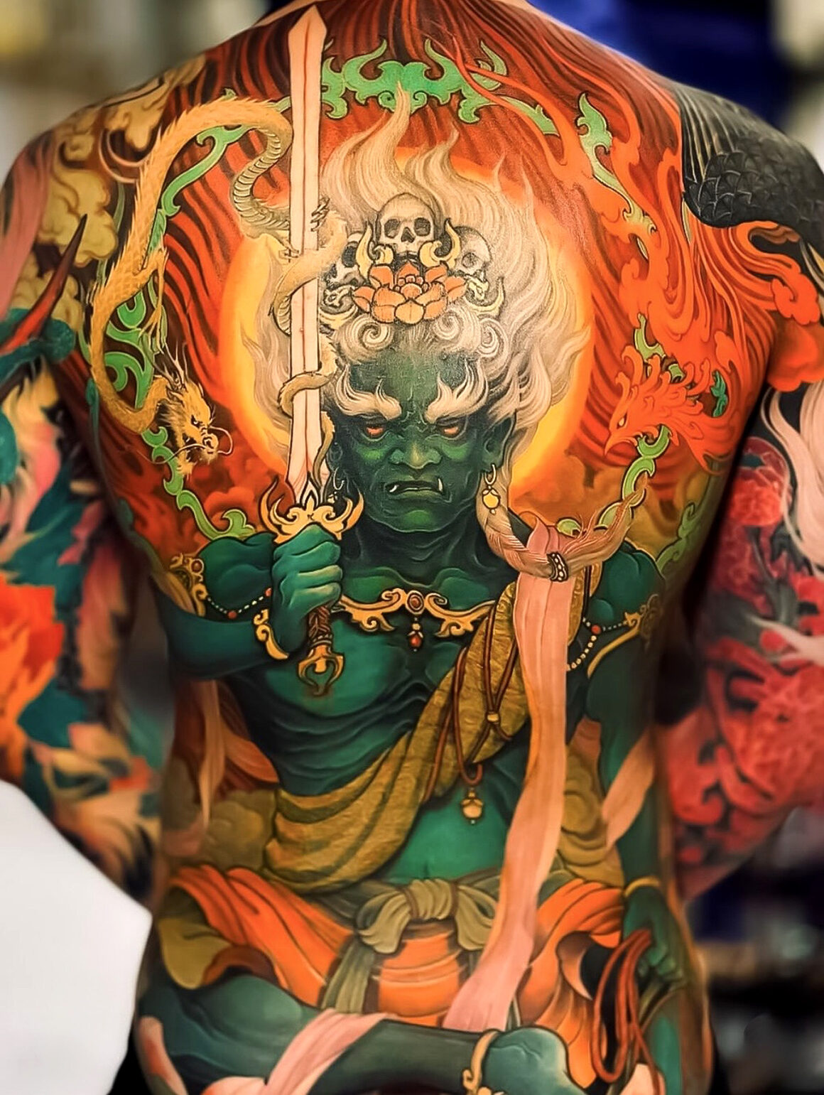 The spiritual depth and storytelling power of Eastern iconography merge seamlessly with today’s global tattoo aesthetic, resulting in works that balance elegance, rhythm, and visual impact.