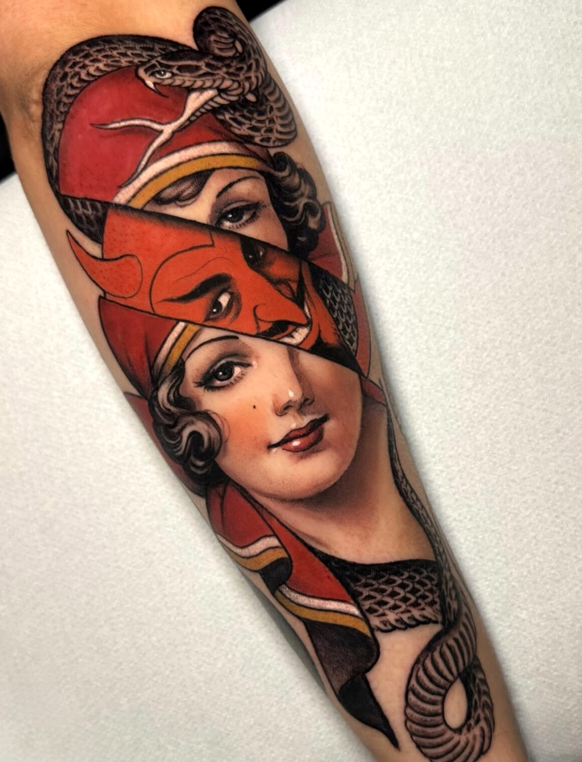 Realism, ornamental, graphic, illustrative, and dark styles intersect, generating new stylistic hybrids—between Neo-Traditional and dark, illustrative and ornamental, Japanese and fresh reinterpretations that evolve into Neo-Japanese. Each style is the result of study, technical research, and personal vision, in a constant dialogue between heritage and innovation.