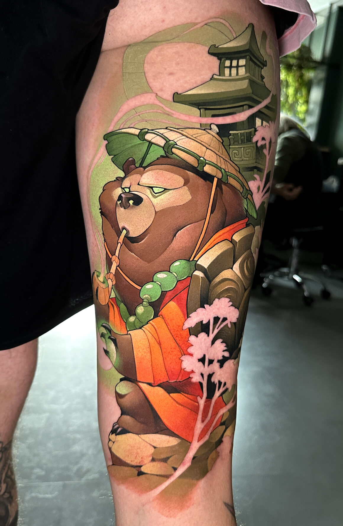I would describe it as Graffiti/Cartoon characters. At first it was more “childish” and “funny,” but I slowly gave it more meaning and tried to create a more mature look for my work, even though it’s still New School. I guess it comes with the age. Your tattoo style changes, just like your mentality and vision.