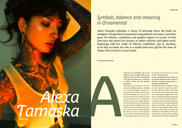 For our cover girl Alexa Tamaska, Ornamental manifests on the body as an interweaving of floral and geometric motifs, an aesthetic construction in dialogue with anatomical form. A shared label, different intentions — and this is not a problem. It is the natural evolution of a living language. But it is also the point at which it becomes necessary to pause and bring clarity. Today every artist can legitimately define themselves according to whichever sensibility feels right to them. There is the risk, however, is that labels multiply to the point of losing precision, generating interpretations that grow ever more distant from one another. When a style becomes too broad a container, it stops truly guiding the viewer. And this is where Tattoo Life comes in.