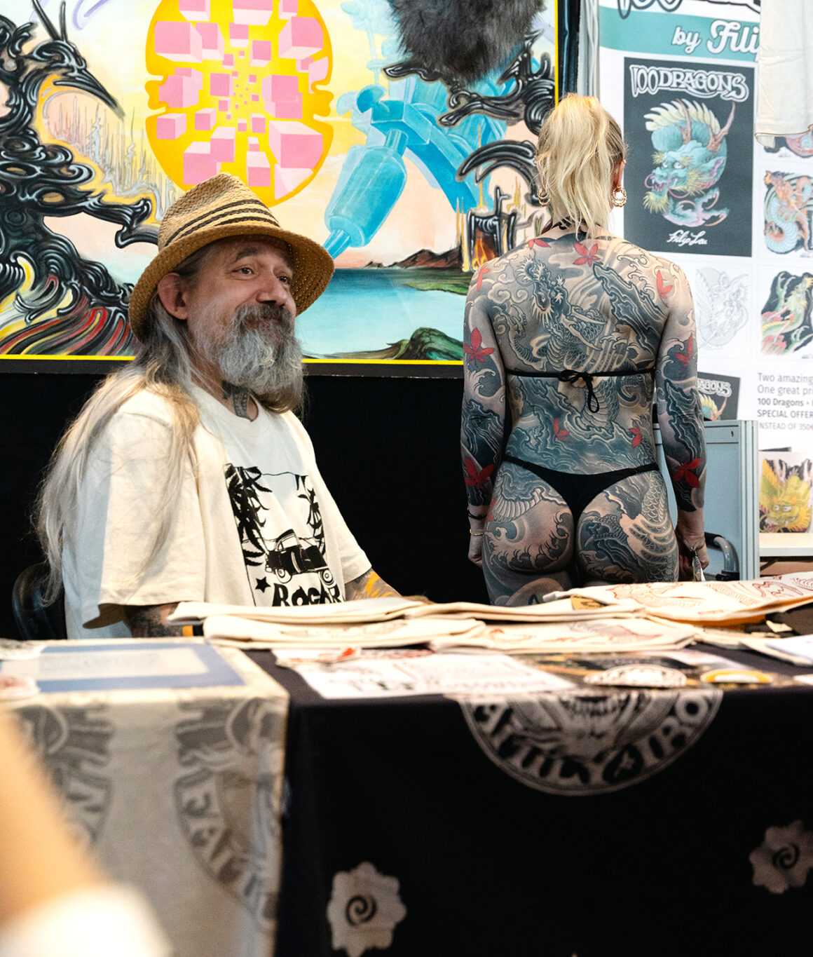 Together with them, we also met some of the leading figures of our book series The Great Books on The Art of Tattooing: from Filip Leu—who held a signing session at our booth for the latest volume created with us, 100 Dragons—to Robert Borbas, author of Incubus, Stizzo, author of Time We’ll Remember, as well as masters such as Shibuya Horiken, Horihiro, Antonio Macko, and Paul Dobleman, just to name a few. A valuable opportunity to see these artists at work and to explore firsthand the technical aspects related to products.